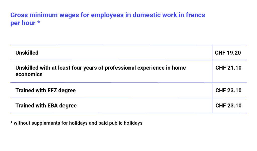 Gross minimum wages for nannies in Switzerland