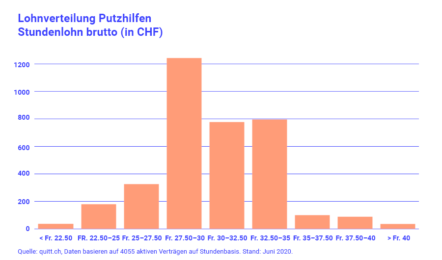 Soviel zahlen Schweizer Arbeitgebende Ihrer Putzfrau: Die Online-Plattform quitt. erledigt die Lohnabrechnungen von über 20’000 Haushaltshilfen in der Schweiz und kennt daher den durchschnittlichen Stundenlohn den Frau und Herr Schweizer ihrer Reinigungskraft bezahlen.