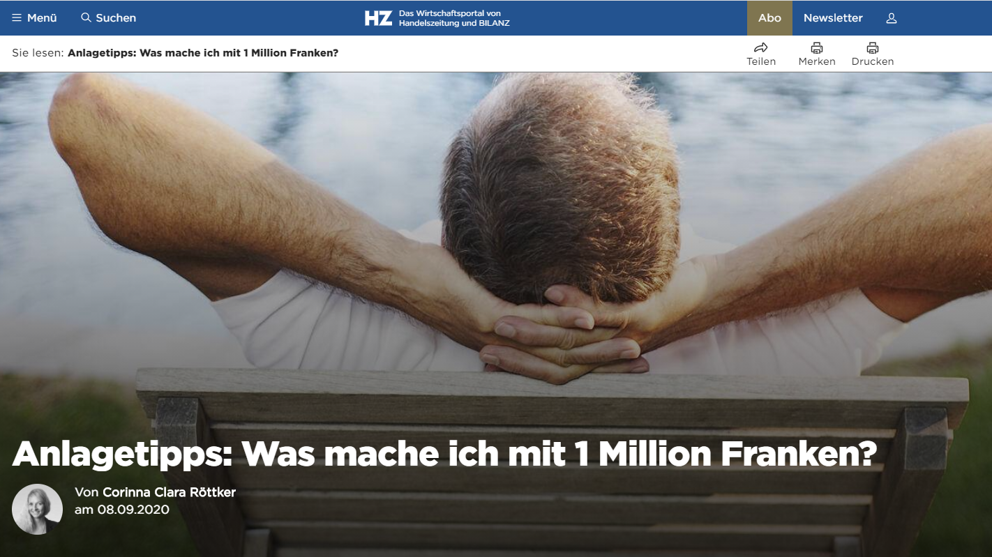 Artikel Handelszeitung „Anlagetipps: Was mache ich mit 1 Million Franken?“